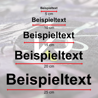 Individueller Schriftzug zum Aufbügeln – personalisierbar in Größe & Schriftart